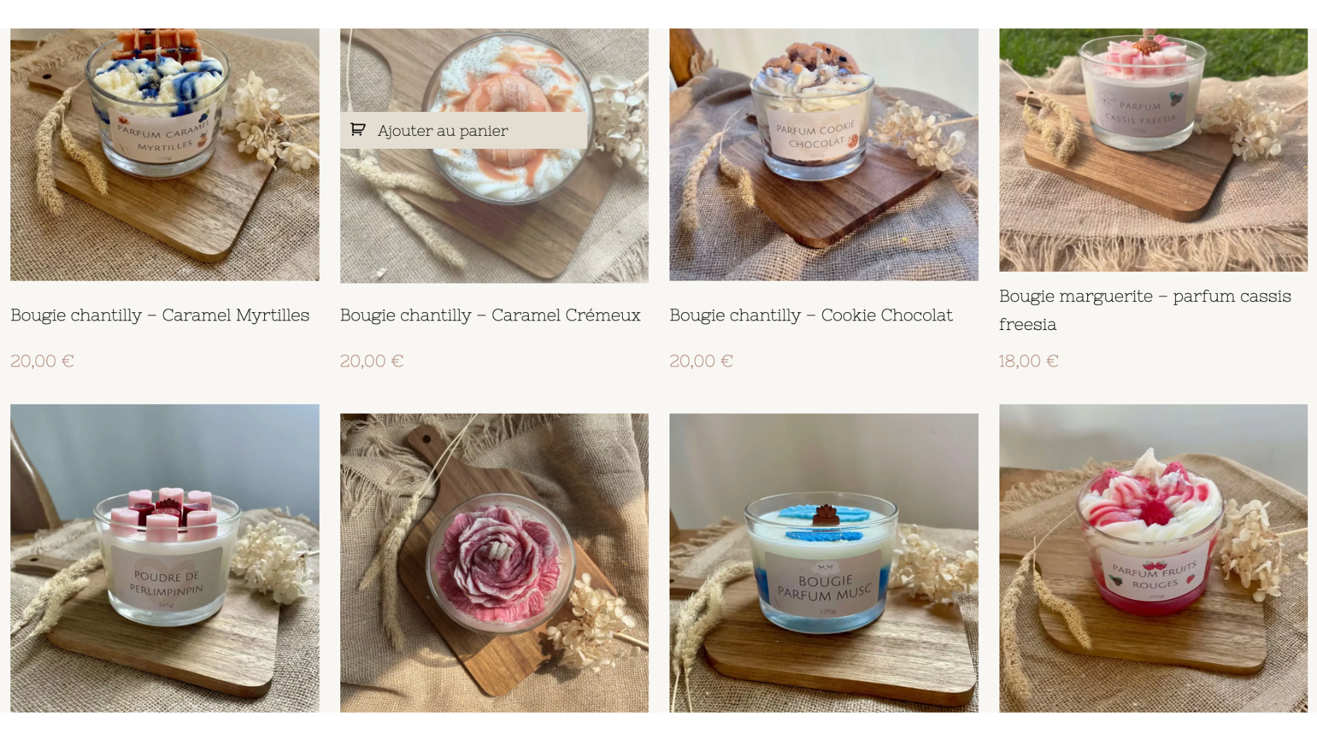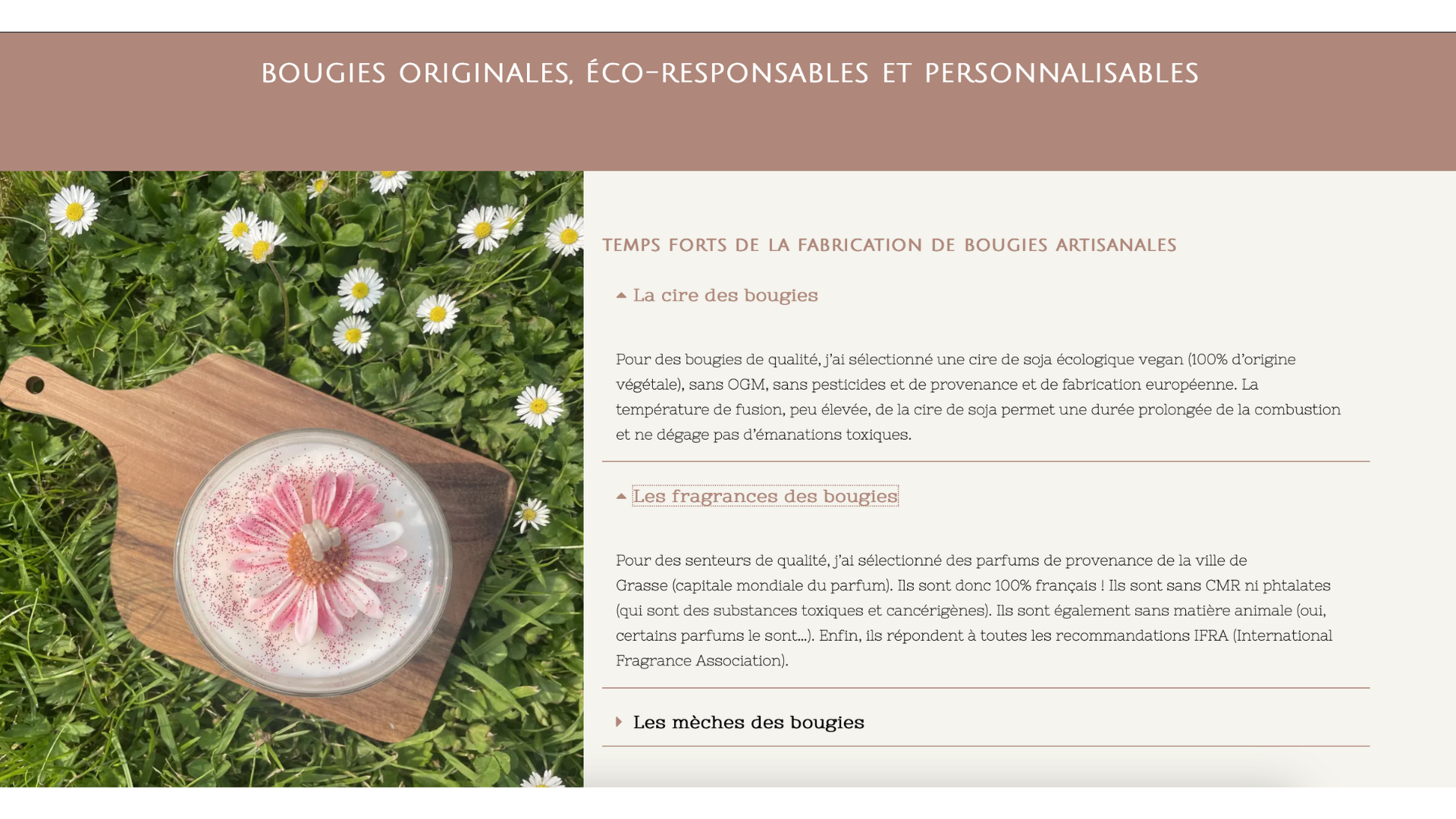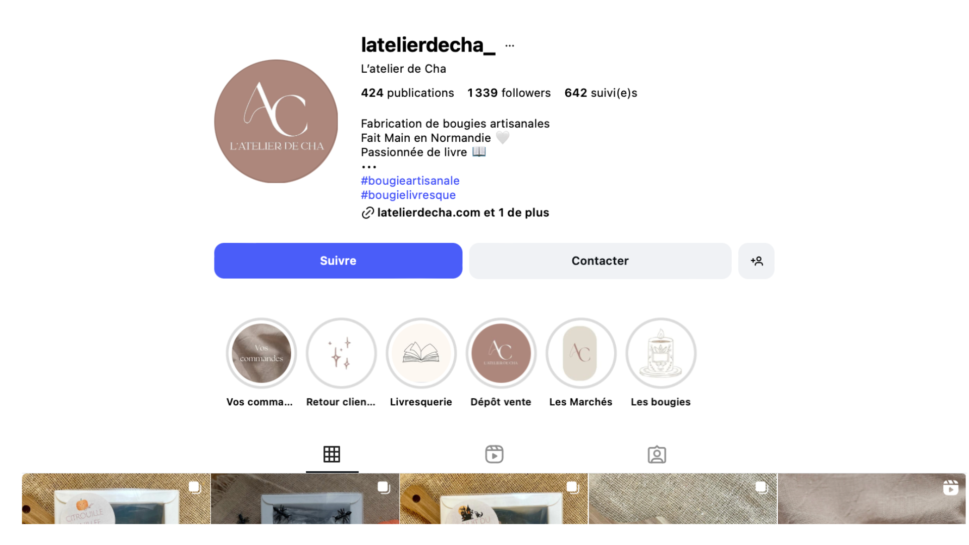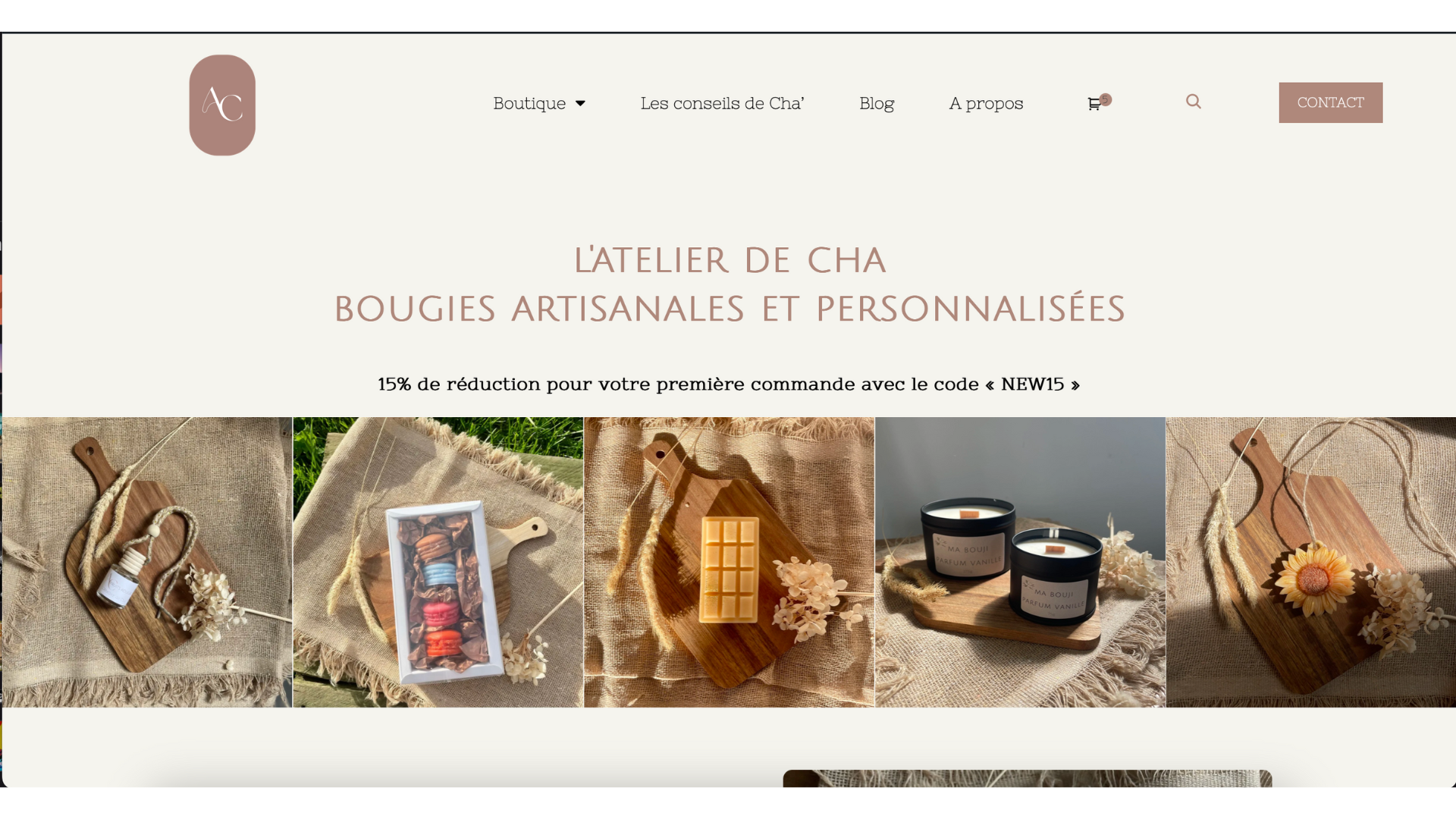 Création d’une identité visuelle (logotype, typographie, iconographie, palette de couleurs). Création d’un site e-commerce (sous WordPress – woocommerce) pour la marque de bougies artisanales, L’Atelier de Cha, en Normandie.