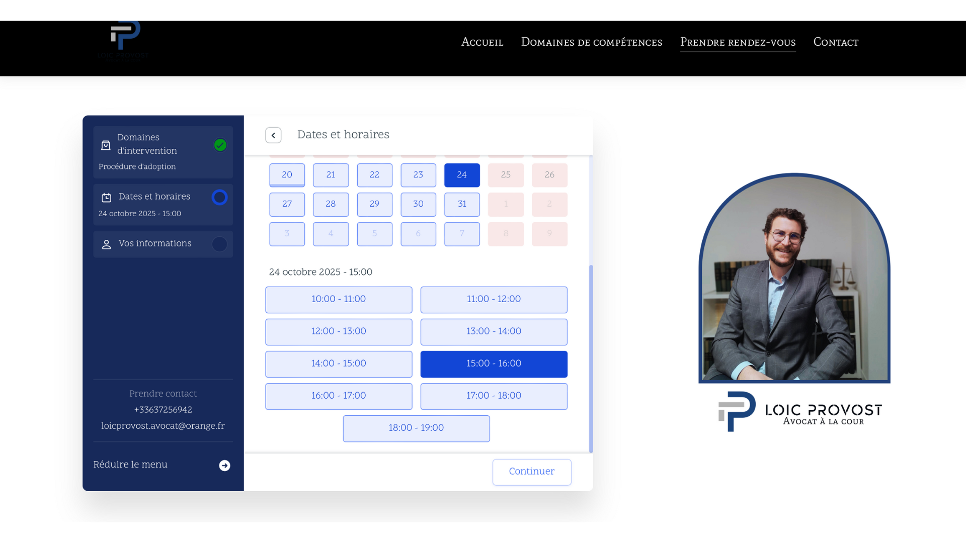 Création d’un logotype et d’un site web sous WordPress avec la possibilité de réserver en ligne un rendez-vous avec Maître Loïc Provost, avocat en Gironde.